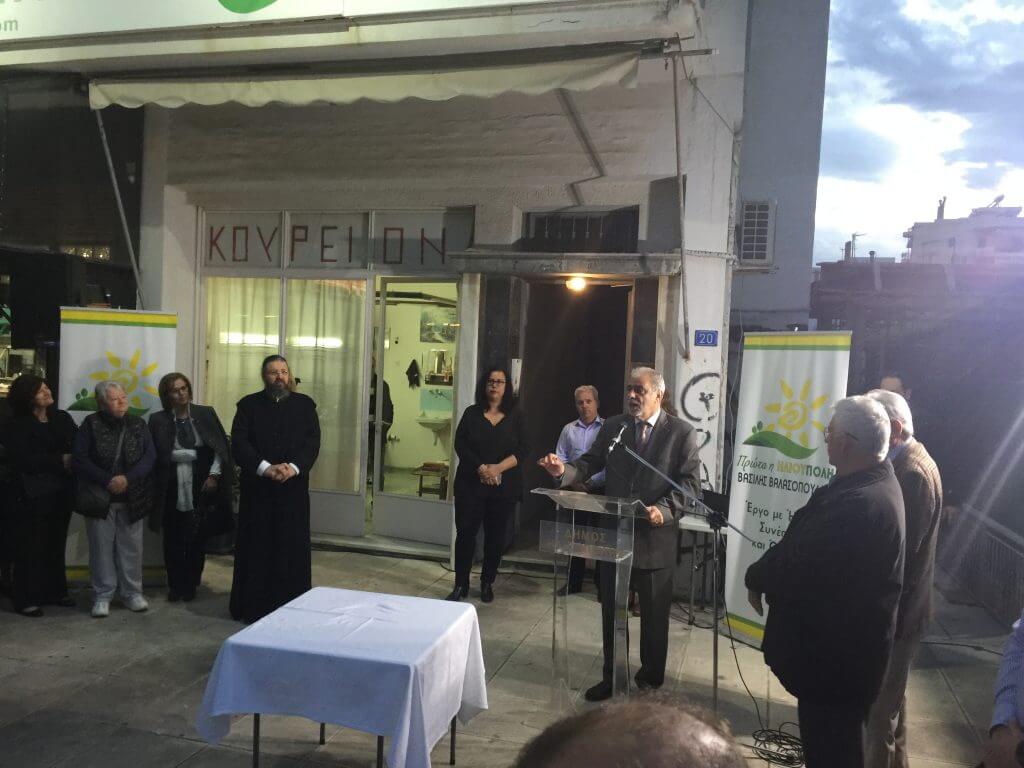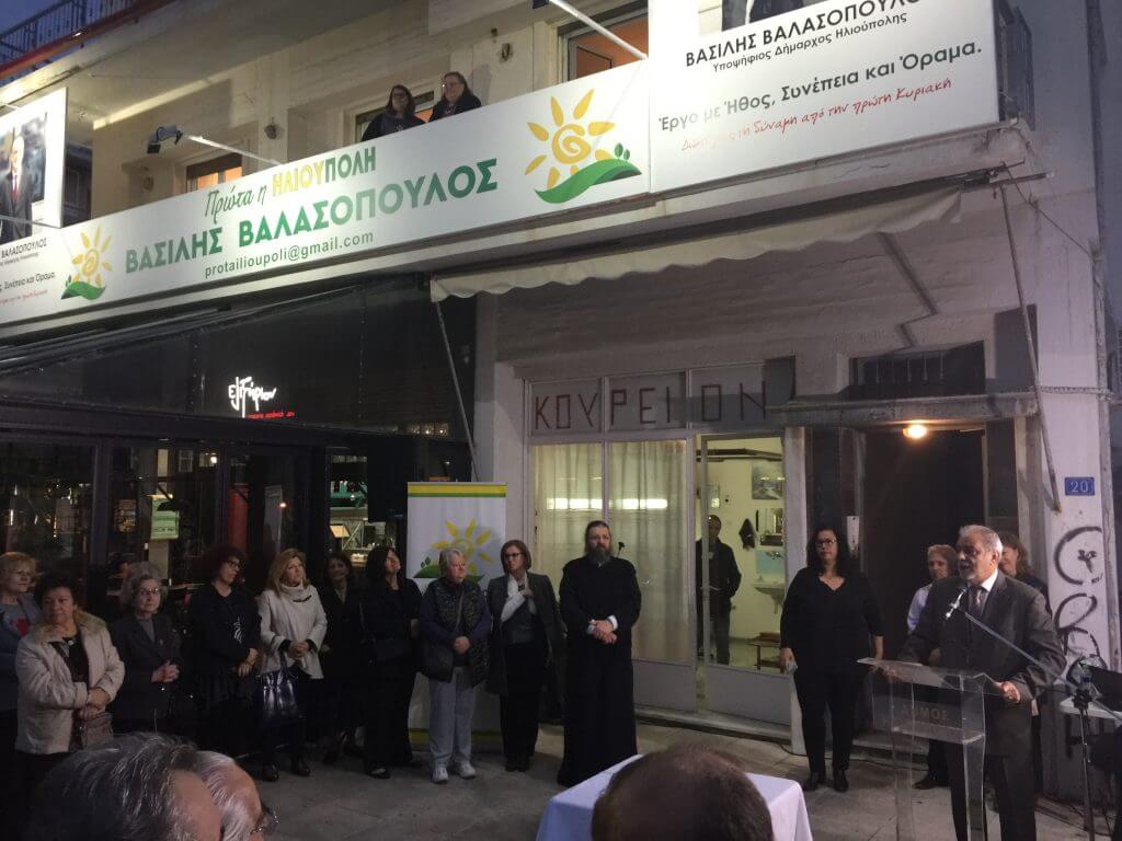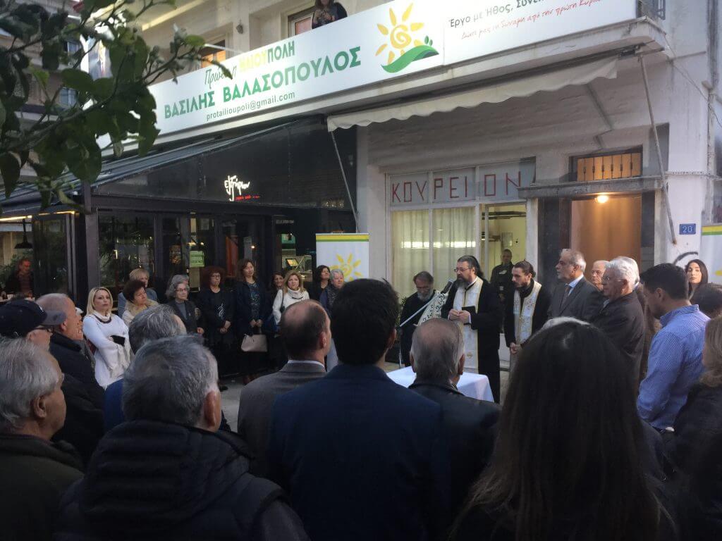 Τα εγκαίνια πραγματοποιήθηκαν την Πέμπτη 11/4/2019 στα γραφεία επί της Λεωφόρου Ειρήνης. Κατά το τέλος της τέλεσης του καθιερωμένου αγιασμού, ο ιερέας μετέφερε τις ευχές του αρχιεπισκόπου στον Δήμαρχο, ενώ μίλησε με θερμά λόγια για την εκ νέου υποψηφιότητα του Βασίλη Βαλασόπουλου.