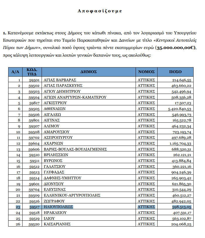 Επίσης, όπως όλα δείχνουν, ο Δήμος θα δει επιπλέον άλλες 598.000 ευρώ στο ταμείο του, από την επιστροφή του τέλους ταφής που ανακοίνωσε το υπουργείο Εσωτερικών. Το συγκεκριμένο ποσό αποδεσμεύτηκε από το κεντρικό κράτος κατόπιν πιέσεων που είχαν ασκήσει οι Δήμαρχοι της Αττικής, με τον αρμόδιο υπουργό Εσωτερικών Θοδωρή Λιβάνιο να υπογράφει τη σχετική απόφαση για την διανομή 35 εκατομμυρίων στους Δήμους του λεκανοπεδίου.