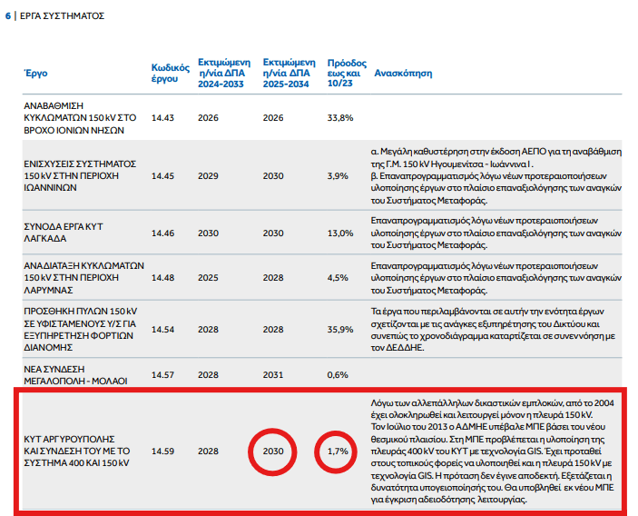 Σύμφωνα με το δεκαετές πρόγραμμα ανάπτυξης του συστήματος μεταφοράς για το διάστημα 2025-2034, ο ΑΔΜΗΕ έχει ένα σαφές πλάνο εργασιών, τεχνικών προδιαγραφών του έργου και συγκεκριμένο χρονοδιάγραμμα για την αναβάθμιση του ΚΥΤ Ηλιούπολης, με την «αδειοδότηση» να εκτιμάται τον Ιανουάριο του 2026, τη διακήρυξη του έργου αναβάθμισης τον Σεπτέμβριο του 2027 και την ολοκλήρωση των εργασιών το δεύτερο τρίμηνο του 2030.
